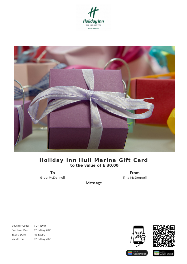 Holiday Inn Hull Marina allows you to purchase instantly printable gift vouchers, special offers and tickets using the Voucher Connect platform.